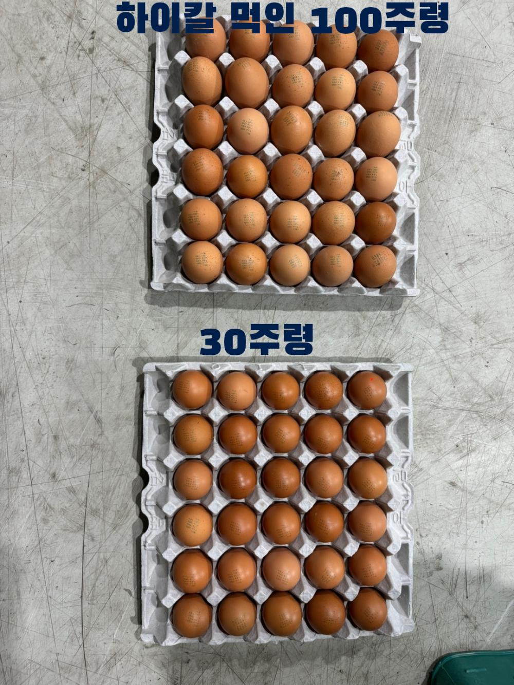 하이칼 먹인 100주령 신계30주령 계란품질비교